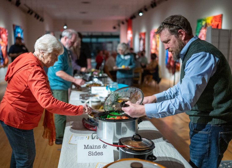 LEWISTON — Community Plate and LA Arts teamed up Saturday night for a story sharing potluck supper at the LA Arts Gallery on Lisbon Street in Lewiston.