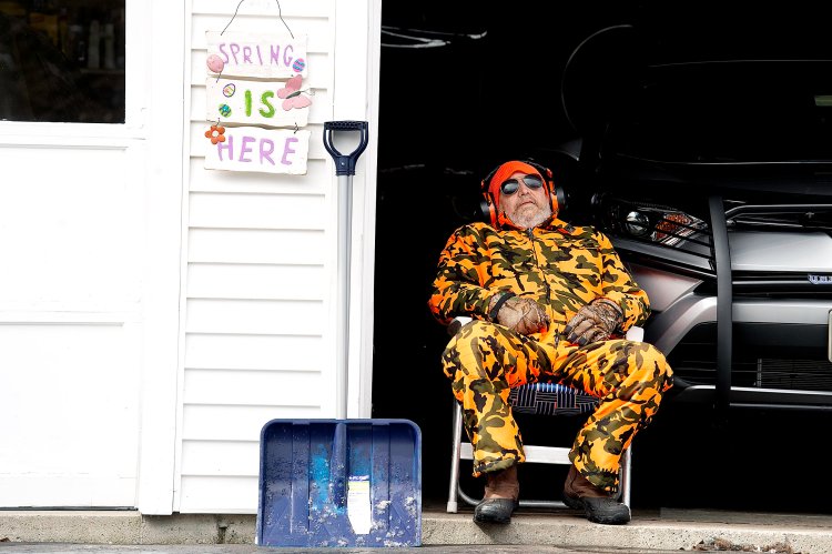 Dennis King takes a break Wednesday after shoveling snow at his home in Greene. He said he is looking forward to warmer weather so he can go fishing. Daryn Slover/Sun Journal