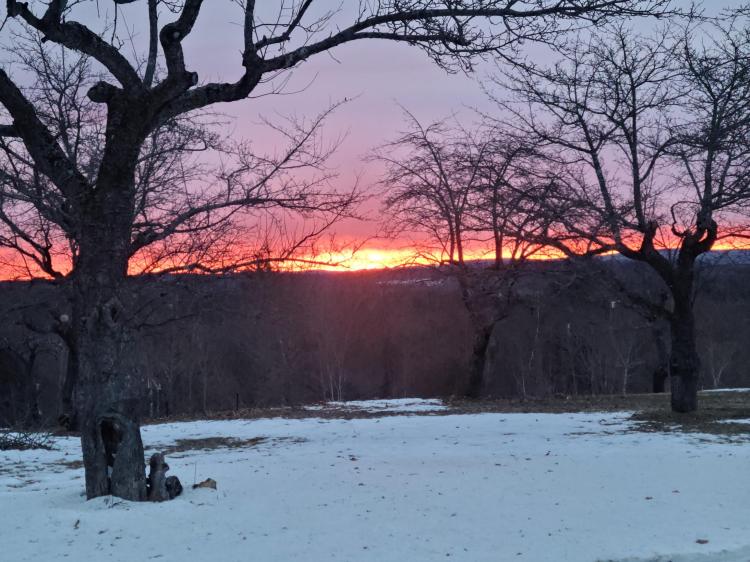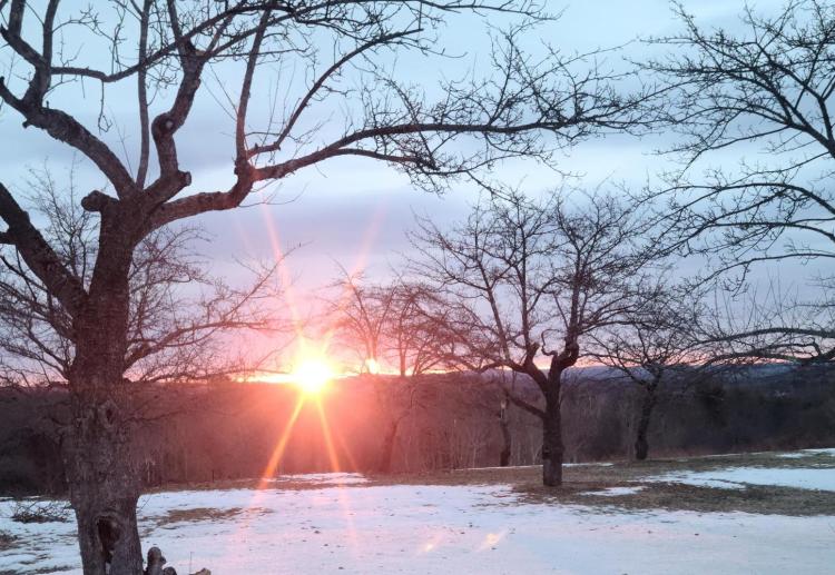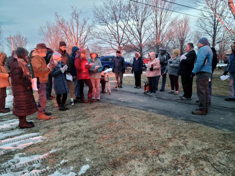 Sunday morning, March 31, light fills the sky below the clouds before an Easter Sunrise service on Orchard Drive in Wilton. Pam Harnden/Livermore Falls AdvertiserThere is just enough space between the horizon and a band of clouds for the rising sun to be seen Sunday morning, March 31, during an Easter sunrise service on Orchard Drive in Wilton. Pam Harnden/Livermore Falls AdvertiserThe rising sun reflects Sunday morning, March 31, on those attending an Easter sunrise service on Orchard Drive in Wilton. Sponsored by Wilton Ecumenical Community Outreach, people from Farmington, Industry, Phillips, Strong and Wilton were among those gathered. Pam Harnden/Livermore Falls Advertiser