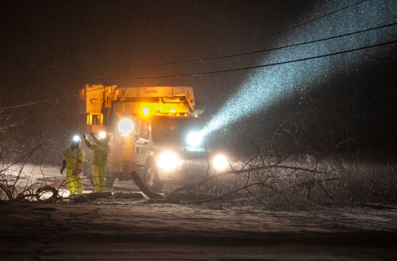 Ordway said crews have taken down trees but have not repaired electric lines. She’ll travel Saturday to a house in nearby New Hampshire “at least to take a shower,” she said.
