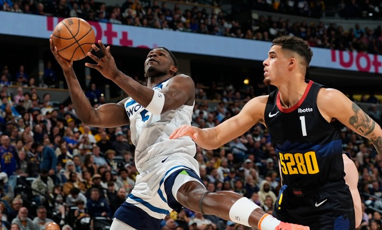 Minnesota raced out to a 42-22 lead, and Edwards threw down a ferocious open-court dunk to help push the halftime edge to 61-35. Denver never came close to mounting a counteroffensive, as Edwards and Karl-Anthony Towns, who moved over to center in place of Gobert, scored 27 points apiece in the breezy victory. Edwards celebrated a late 3-pointer with a Michael Jordan-esque shrug and flexed his biceps after the final buzzer.