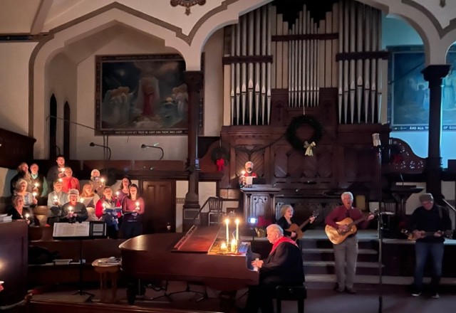 Lifelong member Esther Tucker will give a brief talk about the history of the church. Board President Anne Perron will lead a tour of the iconic building, with its carpenter gothic sanctuary, Hook & Hastings organ and recently restored Rose Window. A light luncheon will be served.