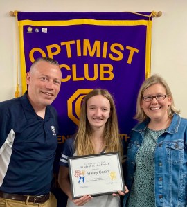 The Tri-Town Optimist Club of Mechanic Falls, Minot and Poland has named Hailey Caron of Mechanic Falls its Regional School Unit 16 student of the month for May.