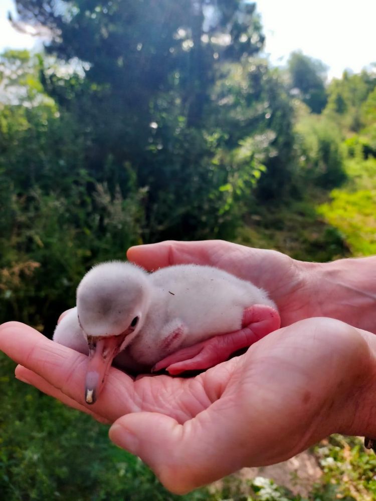 The next surprise came in early May, when one of the flamingo keepers noticed that Gertrude had made a volcano-shaped nest out of mud and was sitting on an egg – the first one she had ever laid, according to caretakers at Gertrude’s previous bird refuge who advised the Pensthorpe staff, Marshall said.