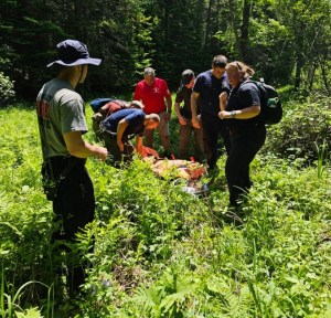 Rescuers carried Berlew about two-thirds of a mile in a stokes basket to a NorthStar EMS ambulance for transport to Central Maine Medical Center in Lewiston, Bacon said.