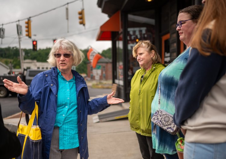 Afterward, locals Jo-Jean Keller and Marianne O’Connor led attendees on a walking tour of Lisbon Falls, which included brief stops at landmarks to hear the stories of what makes each place special.