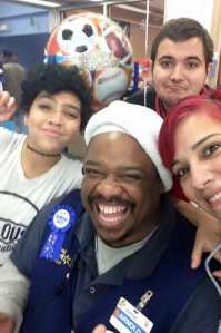 The kids got high fives, that was automatic. Their parents might get a “woot woot!” or a “hey, girlfriend,” or a “how are YOU doing?” depending on their previous relationship with the greeter.