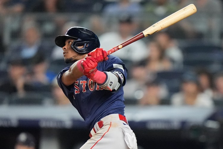 Ceddanne Rafaela hits a two-run home run in the top of the 10th inning in the Red Sox’s 5-3 win over the Yankees on Friday night in New York. Frank Franklin II/Associated Press