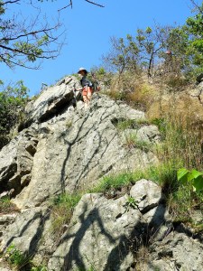 Consult the DeLorme Maine Atlas and Gazetteer (map #4) for help in getting to the public boat launch on Route 160 in Brownfield. The hiking trail up the mountain is located a few hundred yards south of the boat launch, on the right side of Route 160. We were there on a recent Sunday morning. Things were pretty sleepy at the put-in site both before and after our 90-minute excursion. When we returned from our hike two hours later for a cooling dip, the locals had finished Sunday brunch and had arrived with an army of inflatable lobsters and sharks.