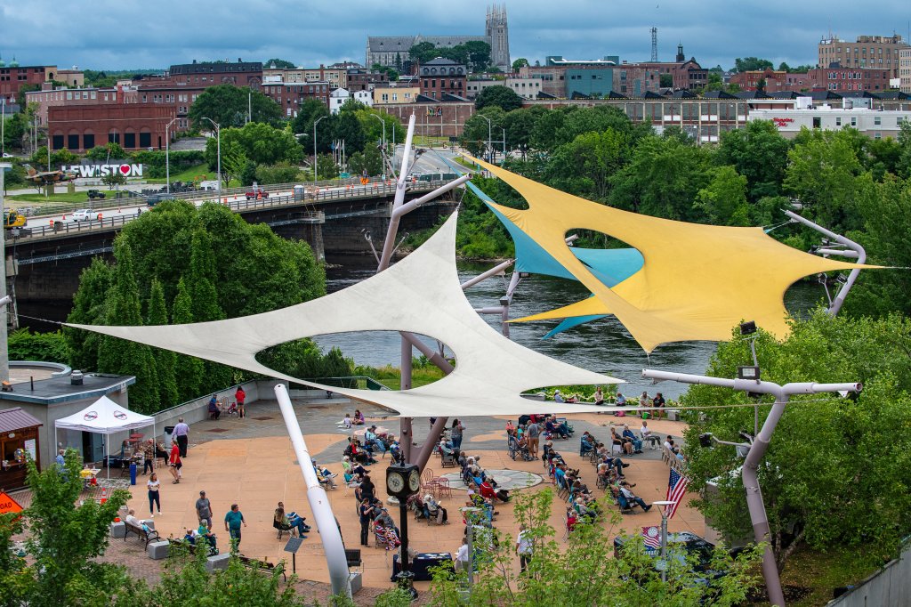 Milt Simon, left, conducts the Auburn Community Concert Band on Wednesday night at Festival Plaza in Auburn. He is in his fourth decade leading the band. Concerts continue every Wednesday at 7 p.m. through Aug. 21. Russ Dillingham/Sun JournalMilt Simon conducts the Auburn Community Concert Band on Wednesday night at Festival Plaza in Auburn. He is in his fourth decade leading the band. Concerts continue every Wednesday at 7 p.m. through Aug. 21. Russ Dillingham/Sun JournalA crowd gathers Wednesday night at Festival Plaza in Auburn before the Auburn Community Concert Band performs. Concerts continue every Wednesday at 7 p.m. through Aug. 21. Russ Dillingham/Sun JournalVolunteers work the concession stands Wednesday night for the Auburn Community Concert Band performance at Festival Plaza in Auburn. Concerts continue every Wednesday at 7 p.m. through Aug. 21. Russ Dillingham/Sun JournalAngel Burnham, top, has some fun Wednesday night drawing chalk around her son, Lennox Farrell, as her daughter, Jaedyn Farrell, left, draws around Gracie Pete before the Auburn Community Concert Band’s performance at Festival Plaza in Auburn. Concerts continue every Wednesday at 7 p.m. through Aug. 21. Russ Dillingham/Sun Journal