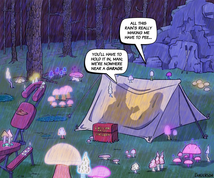 Meanwhile, the camping store, Sierra, continues to vex me. Every time I go in that place, I end up buying things I didn’t know I needed. It’s like I’m hypnotized. I bought so many hiking packs there that I had to pick up an additional pack just to carry them. Plus two sleeping bags that compress down to the size of a single pea so they can fit neatly into one of your 10 hiking packs. Plus an emergency tenting kit in case, you know… I get stranded on Park Street some night. If you hear me blowing my emergency whistle, come quickly and I’ll show you my mushrooms.