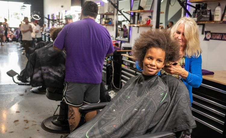 Stephanie Karkos and her daughter, Khloe, 11, watch as her son, Konnor, 8, receives a free haircut Monday during the 4th annual Cuts for Class at Crow’s Nest Barbershop at 600 Turner St. in Auburn. Co-sponsored by Hot Radio Maine, it gave free cuts on a first come, first served basis. Stephanie gave some general guidance to the barber and left the details to her son. “He is asking the kids their opinions, and I love that,” she said. “Some kids are doing lightning bolts on the sides, but Konnor didn’t want that.” Andree Kehn/Sun JournalIinalyie Robinson, 10, smiles at her grandmother Monday while getting a trim from Cherie Clarke at the 4th annual Cuts for Class at Crow’s Nest Barbershop, 600 Center St. in Auburn. Co-sponsored by Hot Radio Maine, it offered free cuts on a first come, first-served basis. Robinson and her sister and brother arrived at 8:45 a.m. to wait in line. Robinson said she debated between getting her hair braided at another location or trimmed at the Crow’s Nest. “But braids take forever, and you have to take breaks,” she said. Andree Kehn/Sun JournalParker Greene, 6, of Auburn receives a free haircut Monday during the 4th annual Cuts for Class at Crow’s Nest Barbershop, 600 Turner St. in Auburn. Co-sponsored by Hot Radio Maine, it offered free cuts on a first come, first served basis. Andree Kehn/Sun JournalEzra Deschaine, 7, of Auburn sits for his free haircut Monday during the 4th annual Cuts for Class at Crow’s Nest Barbershop, 600 Center St. in Auburn. Co-sponsored by Hot Radio Maine, it offered free cuts on a first come, first served basis. Andree Kehn/Sun Journal
