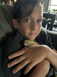 After spending vacation with Gerry, Owen would like a lizard of his own – including a three-foot iguana. But a spotted leopard gecko would suit him fine.