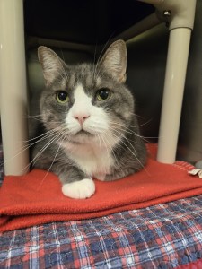 This is our old boy Hobbs. He is just shy of 14 years old. Hobbs was surrendered to RPC because his owners could not care for him and they knew we could find him a wonderful forever home. He is a little overweight and would need better food to help his diet, preferably low-calorie food since his favorite activity is napping. He doesn’t seem to mind other cats. But has never been around dogs.