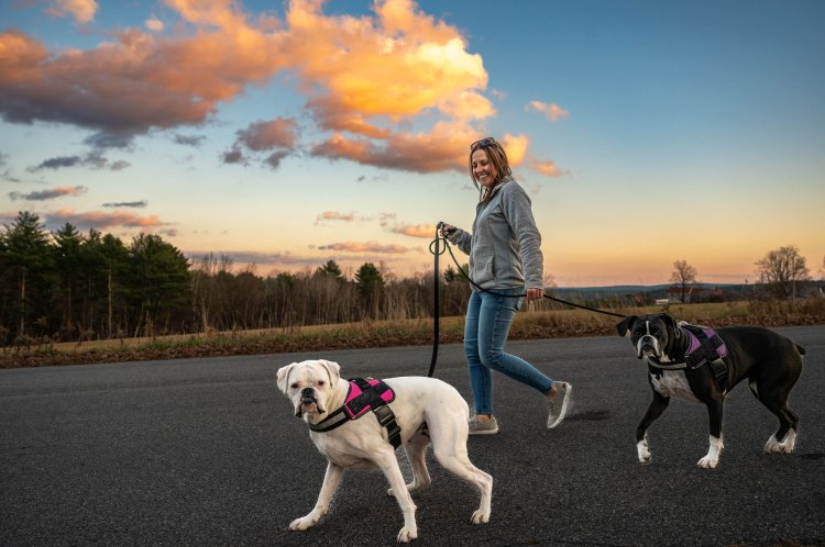 Jessica Smith walks her dogs, Gypsy, left, and Lola on Monday along Cross Road in Minot. The dogs have lived there with Smith all their lives and walk the road every day. “This road is their entire lives,” she said. “It’s very peaceful.” The neighborhood feels very remote and yet is still close to town, she said. Andree Kehn/Sun Journal