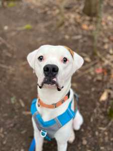 He’s shown some interest in some of our other dogs, we believe he does alright with cats, as long as your cat will tolerate a goofball. Leo will still need an owner who is willing to work on training. He has shown that he listens well and picks up training and tricks quickly. We are currently working on his leash manners but he is improving quickly. Come fall in love with Leo!