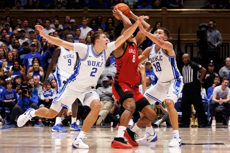 The Redhawks went back and forth with the Blue Devils for the first 10 minutes. But then freshman sharpshooter Kon Knueppel kicked off an 18-7 run with a drive to the basket and a 3-pointer. Khaman Maluach scored with a light touch around the rim, Proctor knocked down a triple, Flagg tacked on four free throws across three trips to the line, and Sion James knocked down a long-range jumper during that stretch – extending Duke’s lead to 12.