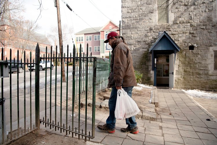 Center clients navigated sidewalks and walkways around the church Tuesday dotted with crusty frozen water, many of them were homeless or in a vulnerable housing situation.