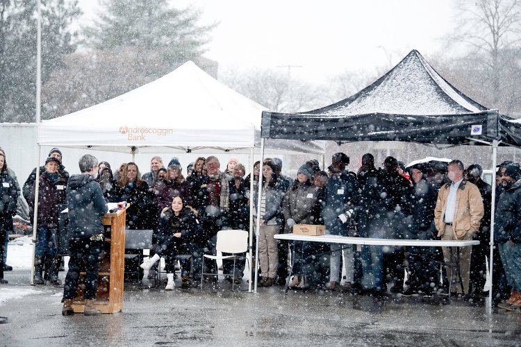 LEWISTON — Fluffy snow flakes fell on people gathered Thursday afternoon to celebrate Trinity Jubilee Center’s groundbreaking ceremony for its new $5.1 million building at 123 Bates St.