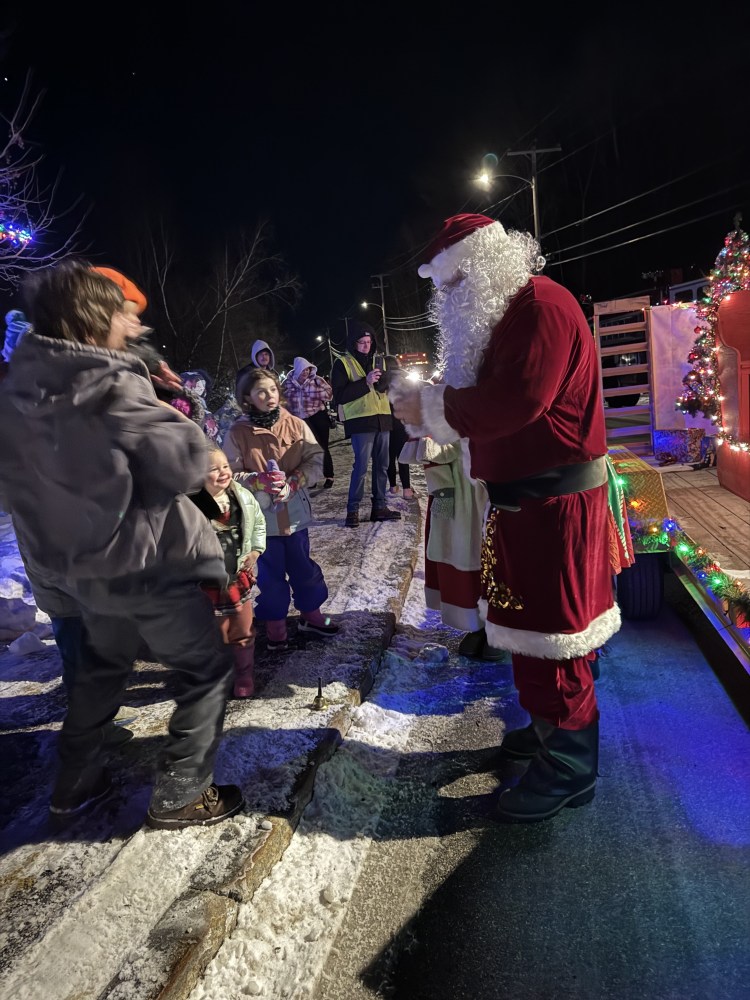 Kylan Durowe, 2, of Norway was the first on Santa’s lap Dec. 6 at the Norway Fire Station to share Christmas wishes. A.M. Sheehan/Advertiser DemocratChildren raced to greet Santa at Butters Park in Norway on Dec. 6, for the annual tree lighting. A.M. Sheehan/Advertiser Democrat