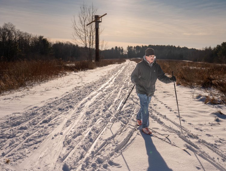 Paul Desjardins gets out Sunday on his cross-country skis at the Auburn Nordic Ski Association trails. Desjardins, who has been skiing since he was a racer for Edward Little High School, says he tries to cross-country ski every day, when time allows. “The trails are good,” Desjardins says, “There’s not much snow, but I put the right wax on my skis.” Andree Kehn/Sun Journal