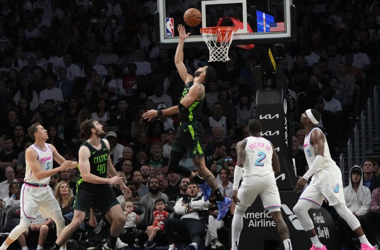 Miami led 24-13, and Boston went on a 26-5 run over the next seven minutes. The Celtics kept control the rest of the way.