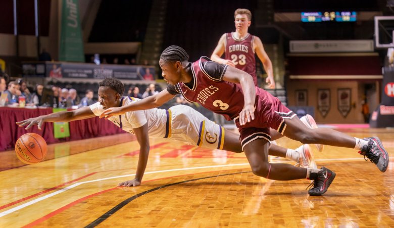 Diing Maiwen put the exclamatory moment on the game when he threw down a two-handed fast-break dunk after a Cheverus turnover with 17 seconds to play for the game’s final points. Cheverus star Leo McNabb (23 points, three 3-pointers) had a look at a tying 3-pointer that was unsuccessful, as was a final inbounds play with six-tenths of a second on the clock.