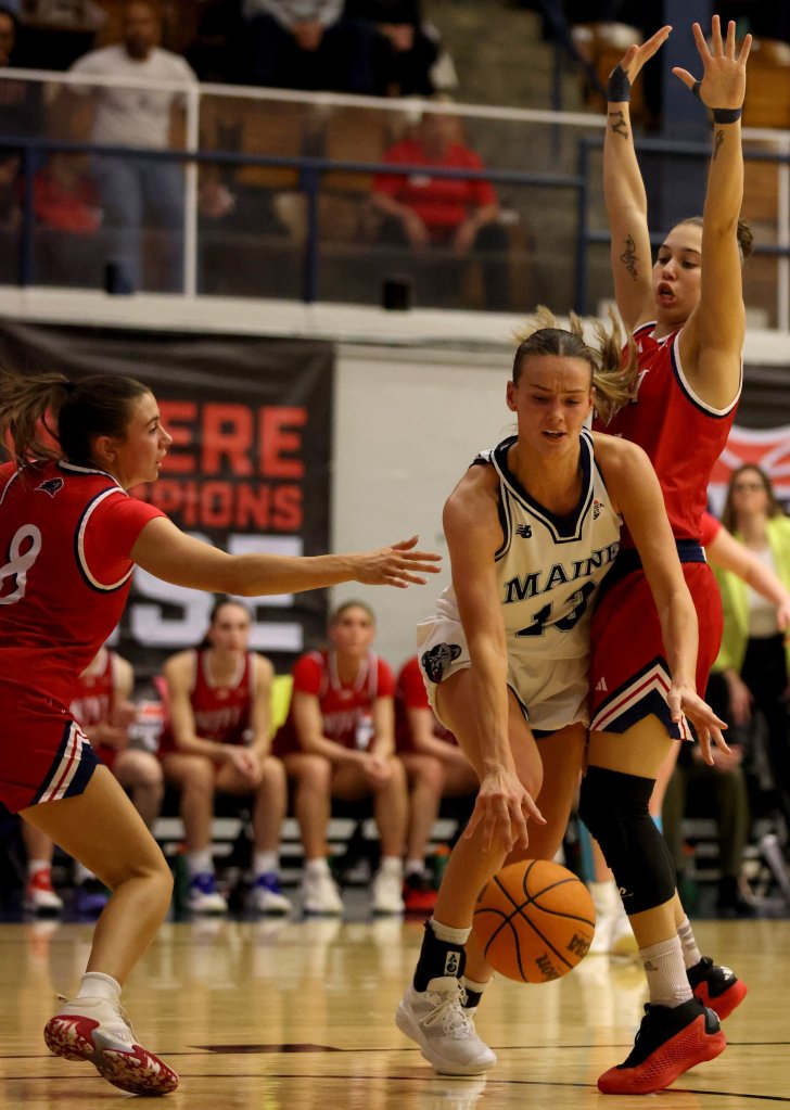 Asta Blauenfeldt’s layup 16 seconds into the second half gave Maine a 33-23 lead, but the Black Bears didn’t score again for seven and a half minutes. The Highlanders chipped away, eventually taking a 34-33 lead on Marissa Ginrich’s 3-pointer with 2:32 left in the third quarter.
