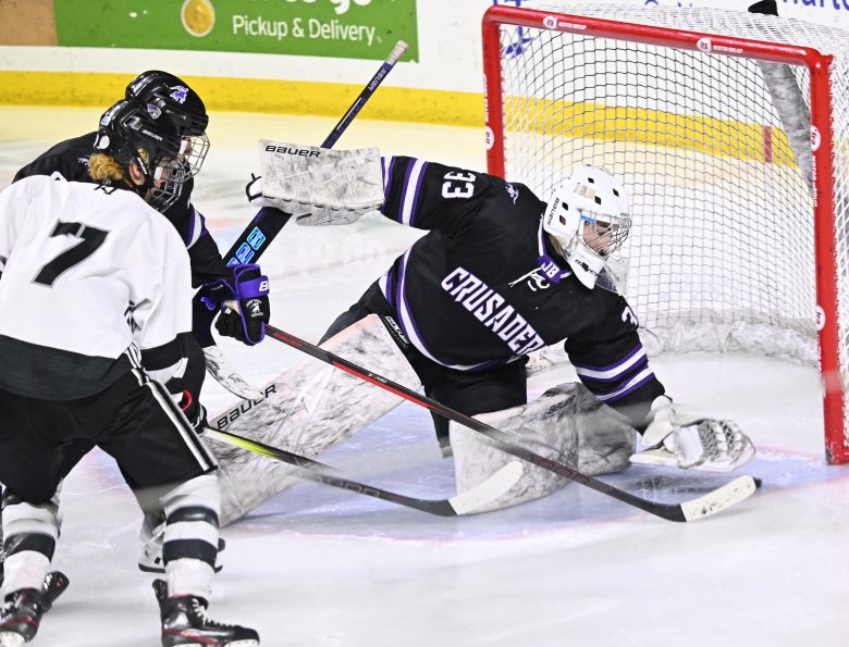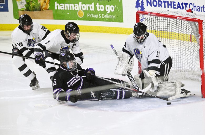 The Crusaders evened the contest later in the first period when Cooper Lewis fired the puck toward the goal and Will Bourgeois redirected it into the net.