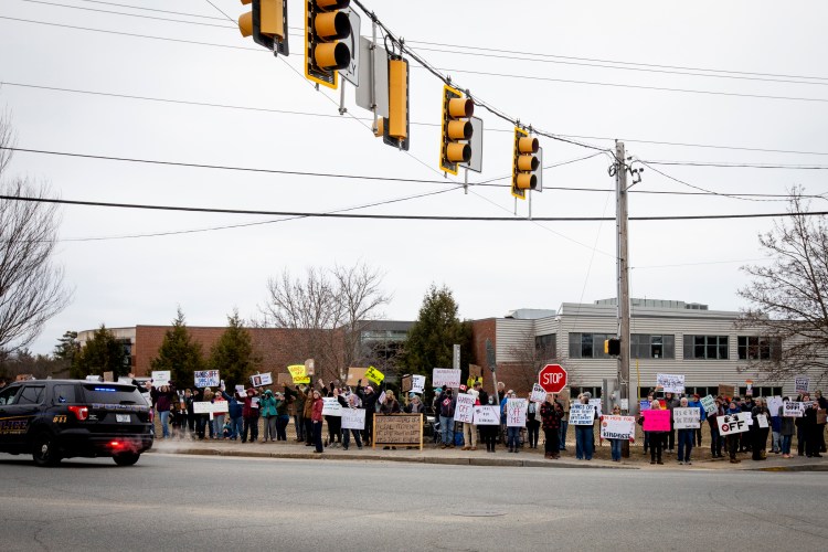 Protest Organizer Tobie Akerley-Gordon of South Paris was pleased with the turnout. “Lots of people wanted to go Augusta [to protest]. I’m a firm believer in staying in your community. When you’re in your community people driving by are seeing their neighbors, their teachers, the person that checked them out at Hannaford’s … You are not a number anymore, you’re actually one of their neighbors … I hope this helps to open conversations.”