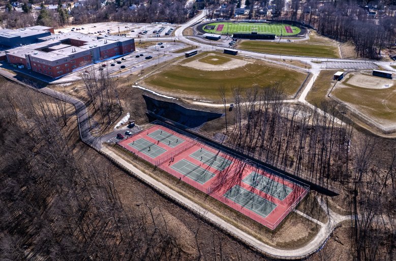 The courts are located behind the still-in-progress baseball and softball fields, which are slated to be ready next spring. The Edward Little baseball and softball teams will again play their home games at Central Maine Community College this season.