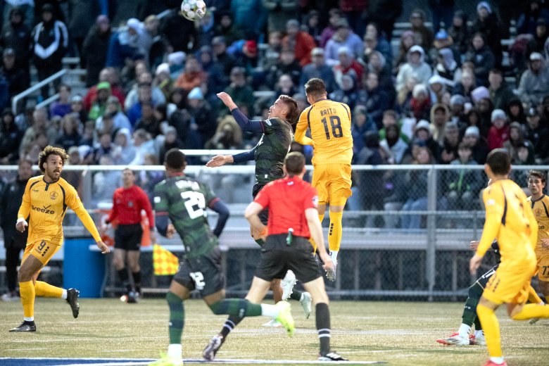 The first goal came in the run of play when a cross from the left to the back post found hard-charging Clay Holstad, who deftly one-timed a hard redirection between the near post and Hearts keeper Hunter Morse in the 35th minute.