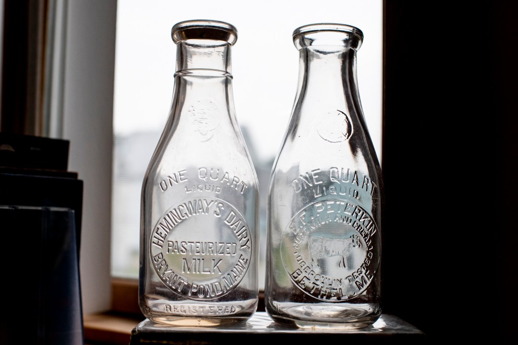 His collecting began in 1948, when his wife, Marion, and his mother bought Wyman’s Dairy. On a shelf in the farm shop sat a few old bottles. Not long after, at a flea market, they spotted others from Maine dairies. That’s when it started, Shaw said. “The rest is history.”