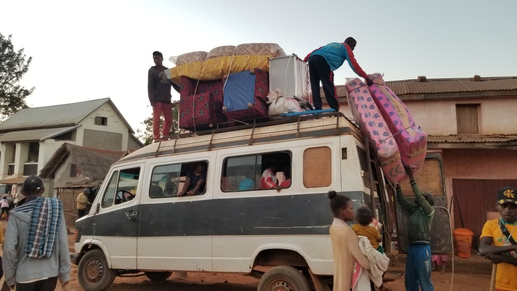 Fanja’s dowry was loaded onto a minivan and a few people, including Fanja and myself, climbed in and left for Julien’s village. Fanja’s family remained behind to party without her.