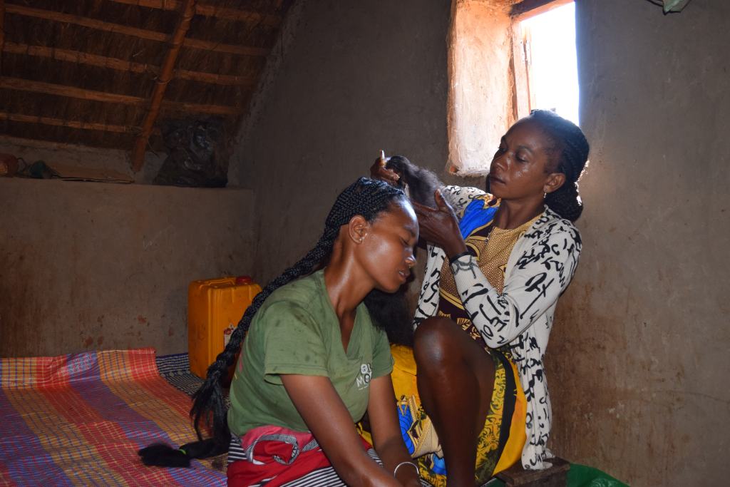 On the morning of June 12, after the legal wedding ceremony was complete, Fanja sits to have her hair braided for the traditional ceremony. The process took more than three hours, as required by local custom.