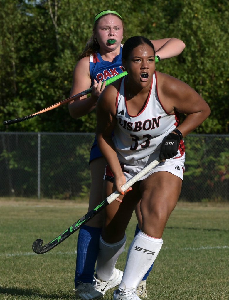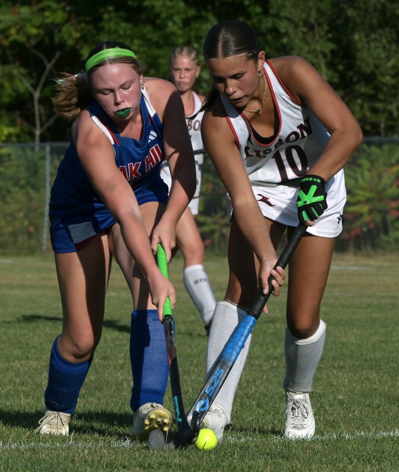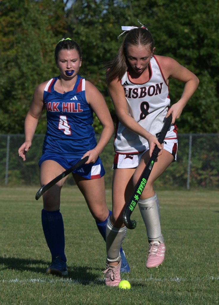 Both goalies, Lisbon’s Sophia Cote and Oak Hill’s Ella Martin, finished with nine saves.