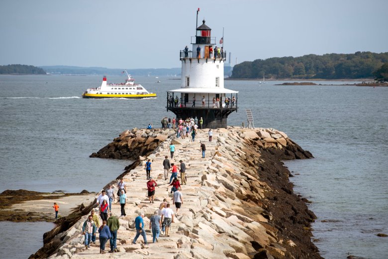 A late summer breeze blew salty and cool off the coast of Casco Bay as crowds of visitors lined up to enter the Portland Breakwater Lighthouse on Saturday morning.