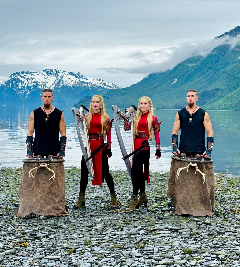 For the second half of the show, the Harp Twins (American harpists Camille and Kennerly Kitt) will be joined by the Volfgang Twins (Drømil and Drømal Vølfgang) on double Viking drums for some rockin’ Nordic-inspired music.