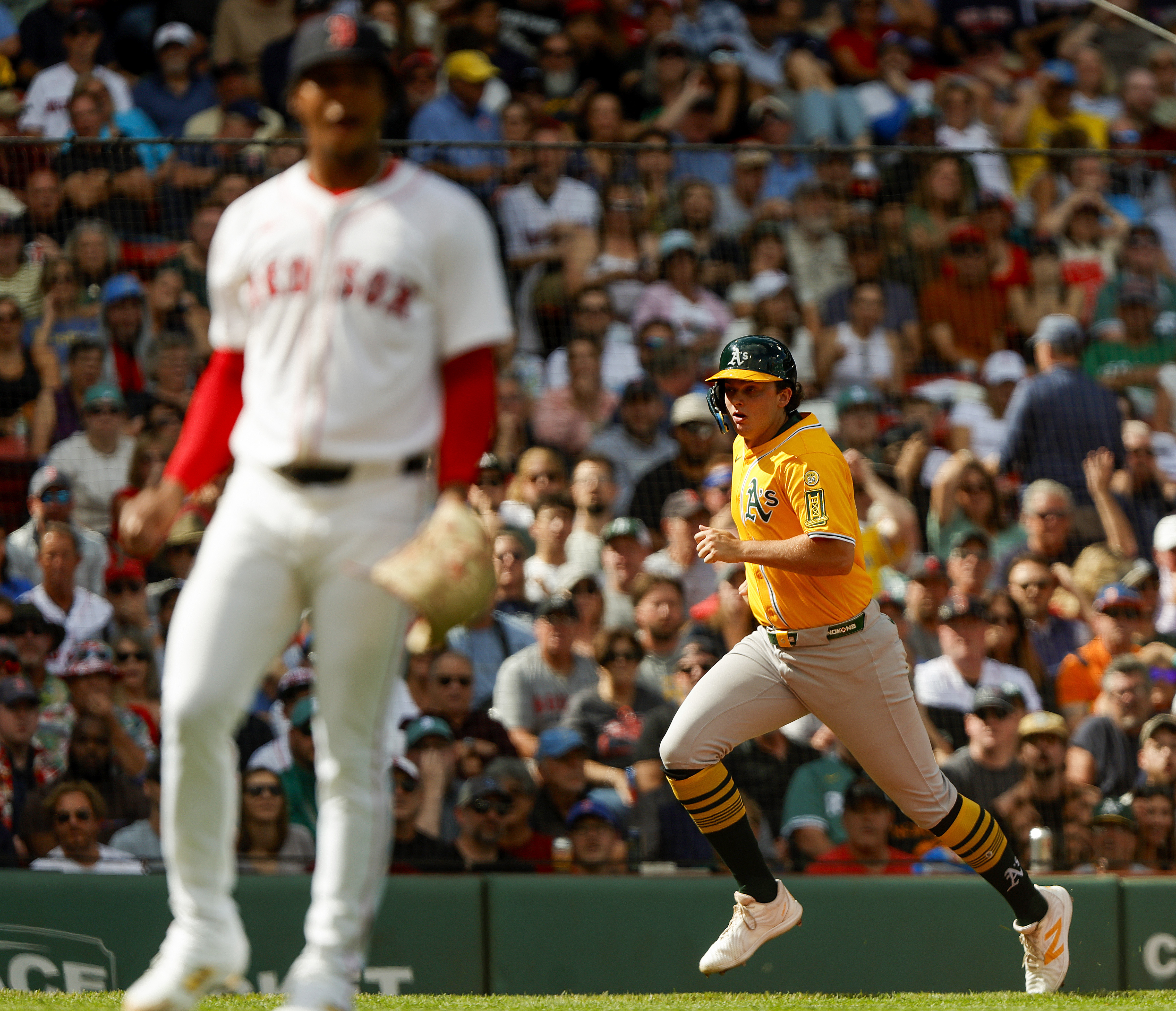 The A’s started things off with Lawrence Butler’s double off the Green Monster, Rooker’s home run, Nick Kurtz’s double and a run-scoring single from Tyler Soderstrom. Bello recorded his first out when Jacob Wilson grounded into a fielder’s choice, then JJ Bleday hit into a double play.