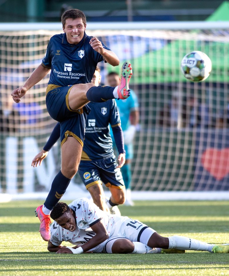 Wright penalty-kick goal was created after extended pressure led to two blocks by Naples’ defense on close-range shots by Titus Washington and Masashi Wada. But Wada’s shot went right into fallen defender Jake Dengler’s belly. Dengler caught the ball in his belly, he was issued a yellow card, Portland had its penalty kick and Wright made it count.