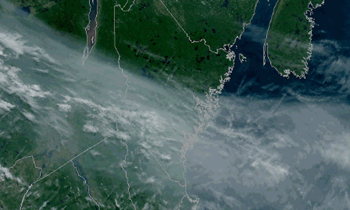Smoke moving high aloft from fires in western Canada are obstructing the sun but no health notices have been issued.