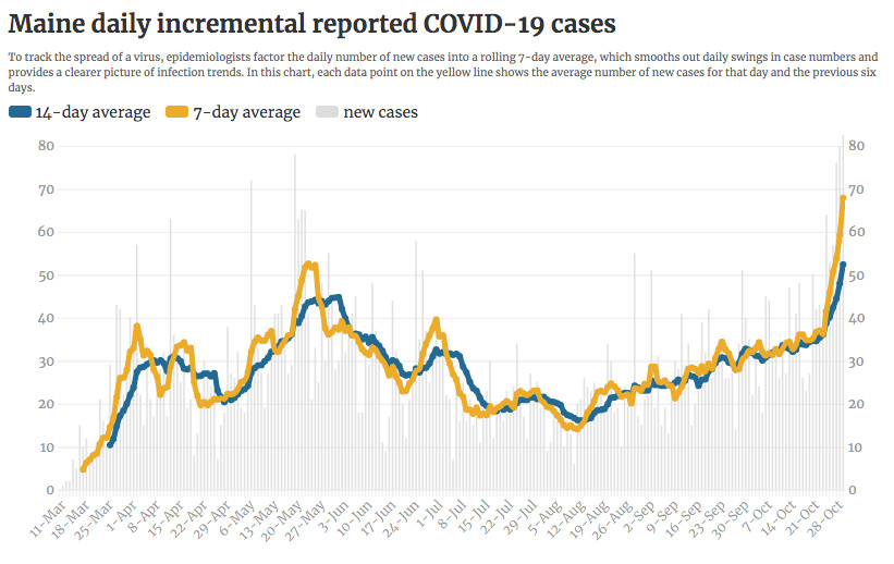 New COVID-19 cases in Maine leap to 103, as surge accelerates
