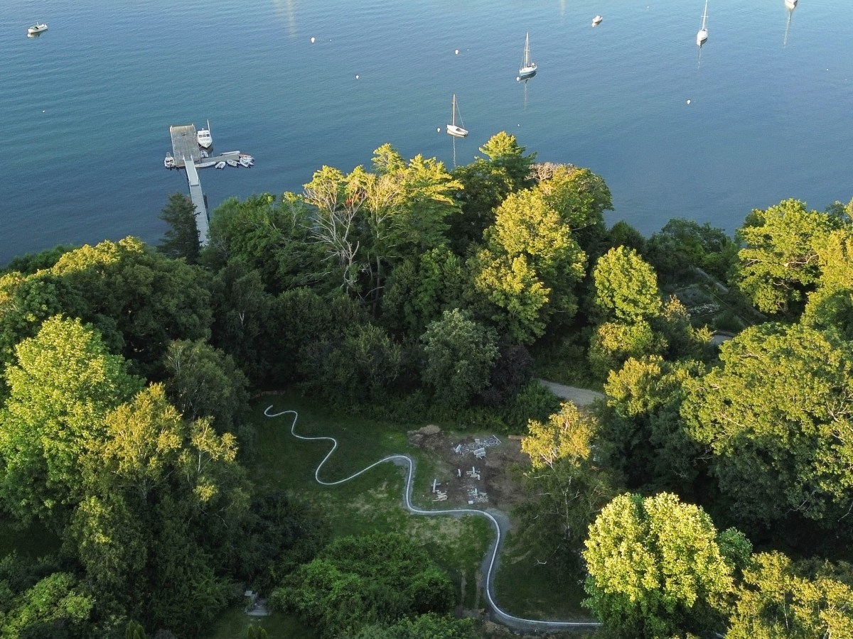 The installation by British artist Andy Goldsworthy comprises 250 curbstones that form a 1,000-foot path from the entrance of the Bar Harbor campus to Frenchman Bay.