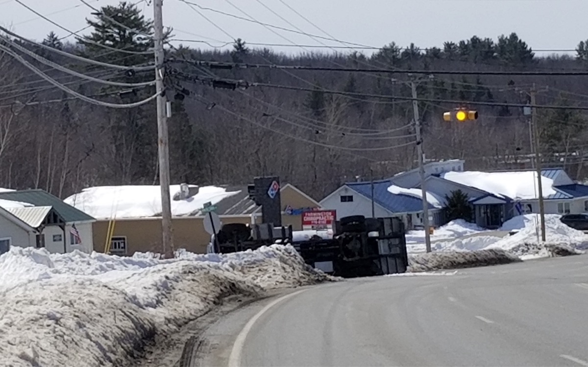 Propane tank truck rolls over in Farmington; pickup driver charged with leaving scene