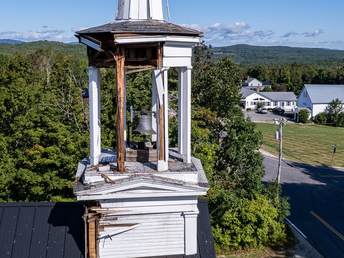 Center Minot Hill Church steeple was struck and severely damaged during Saturday’s storm.