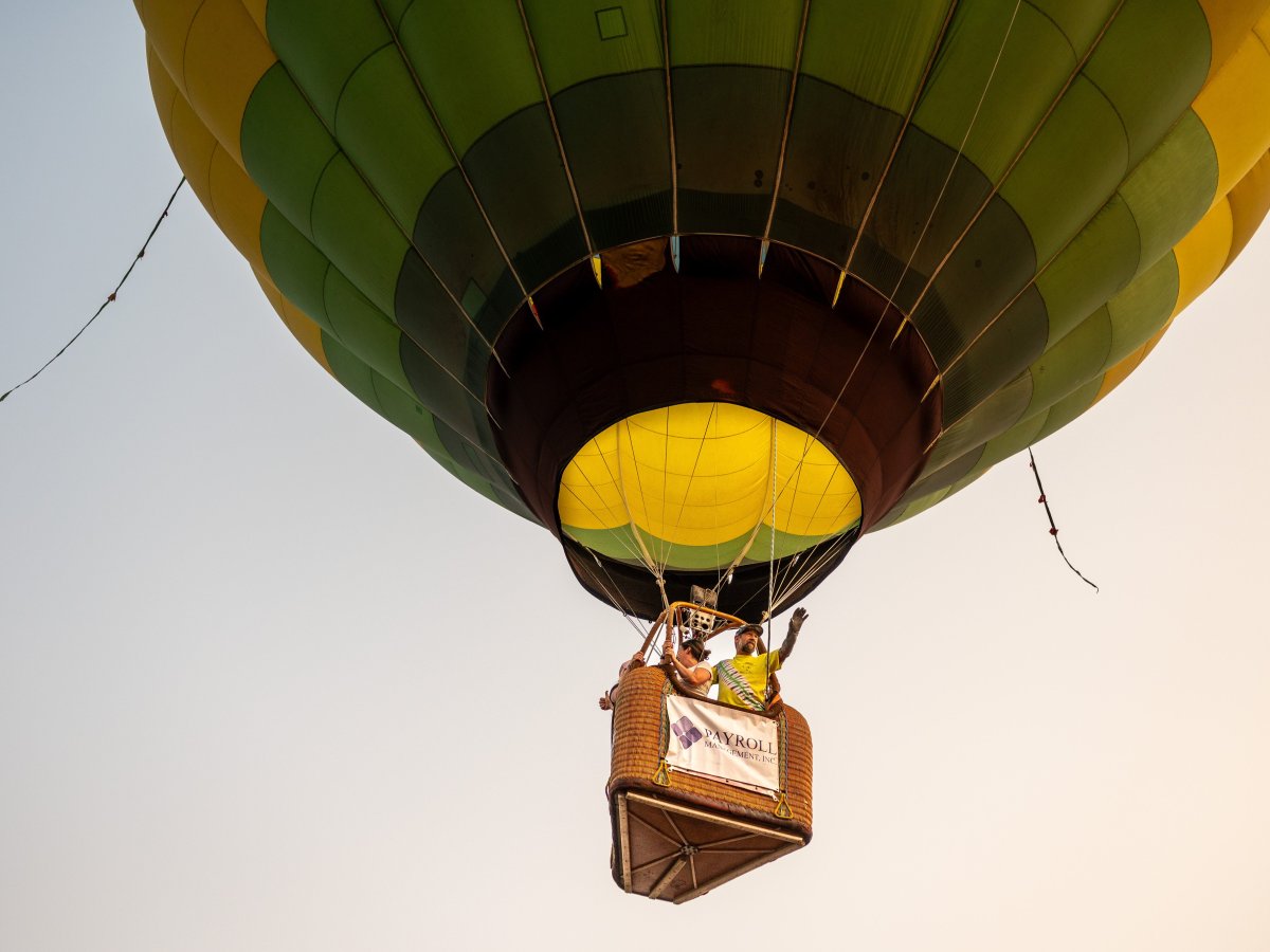 While most balloonists stayed on the ground, Jim Rodrigue opted to rise into the sky
