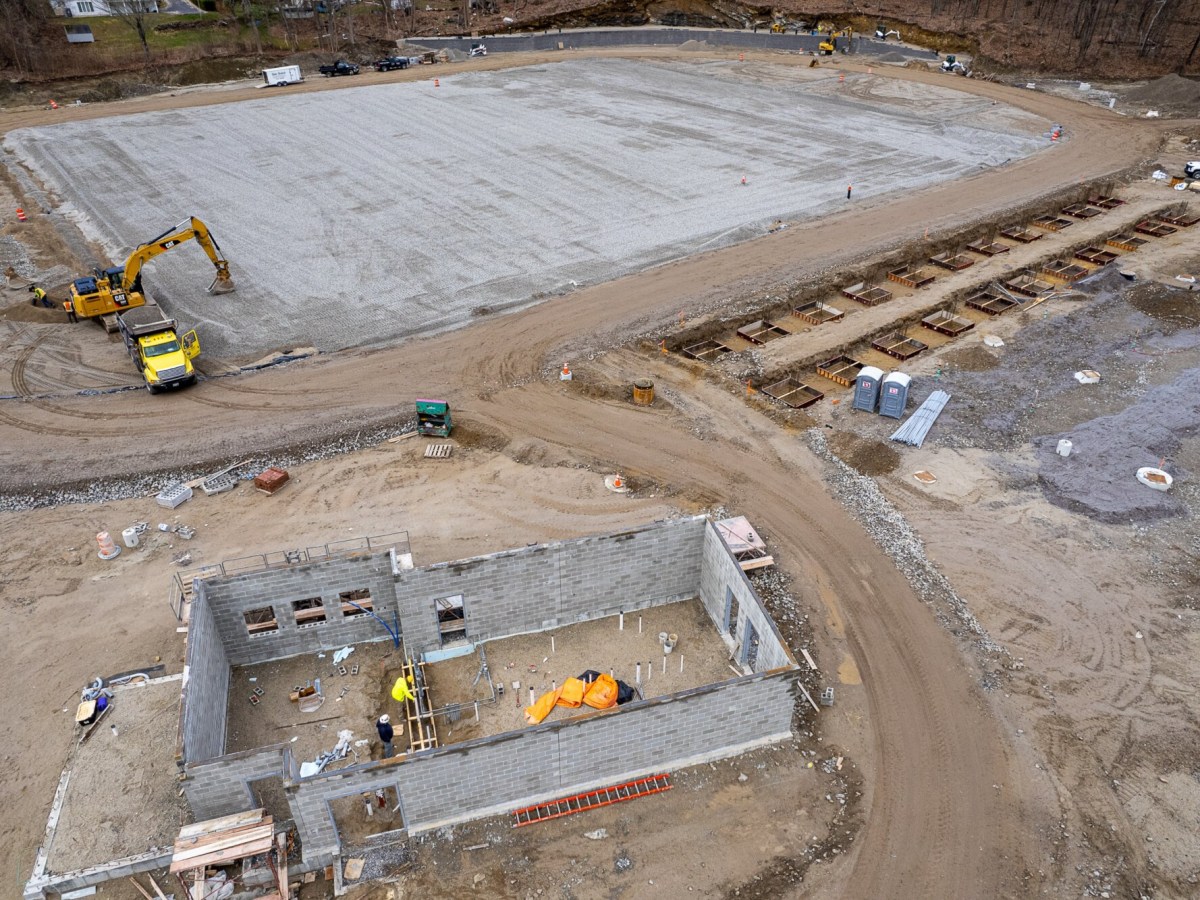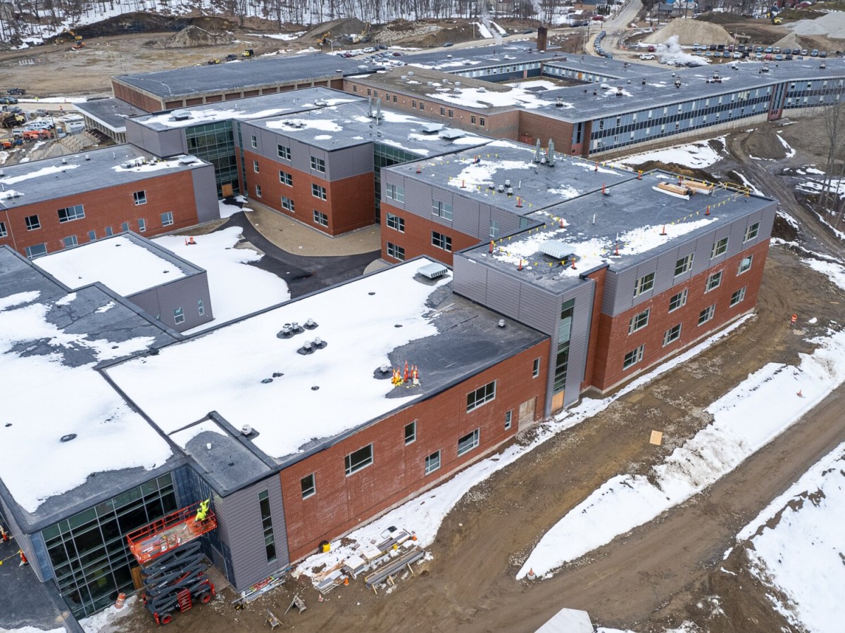 An aerial view of the construction site at the Auburn school.