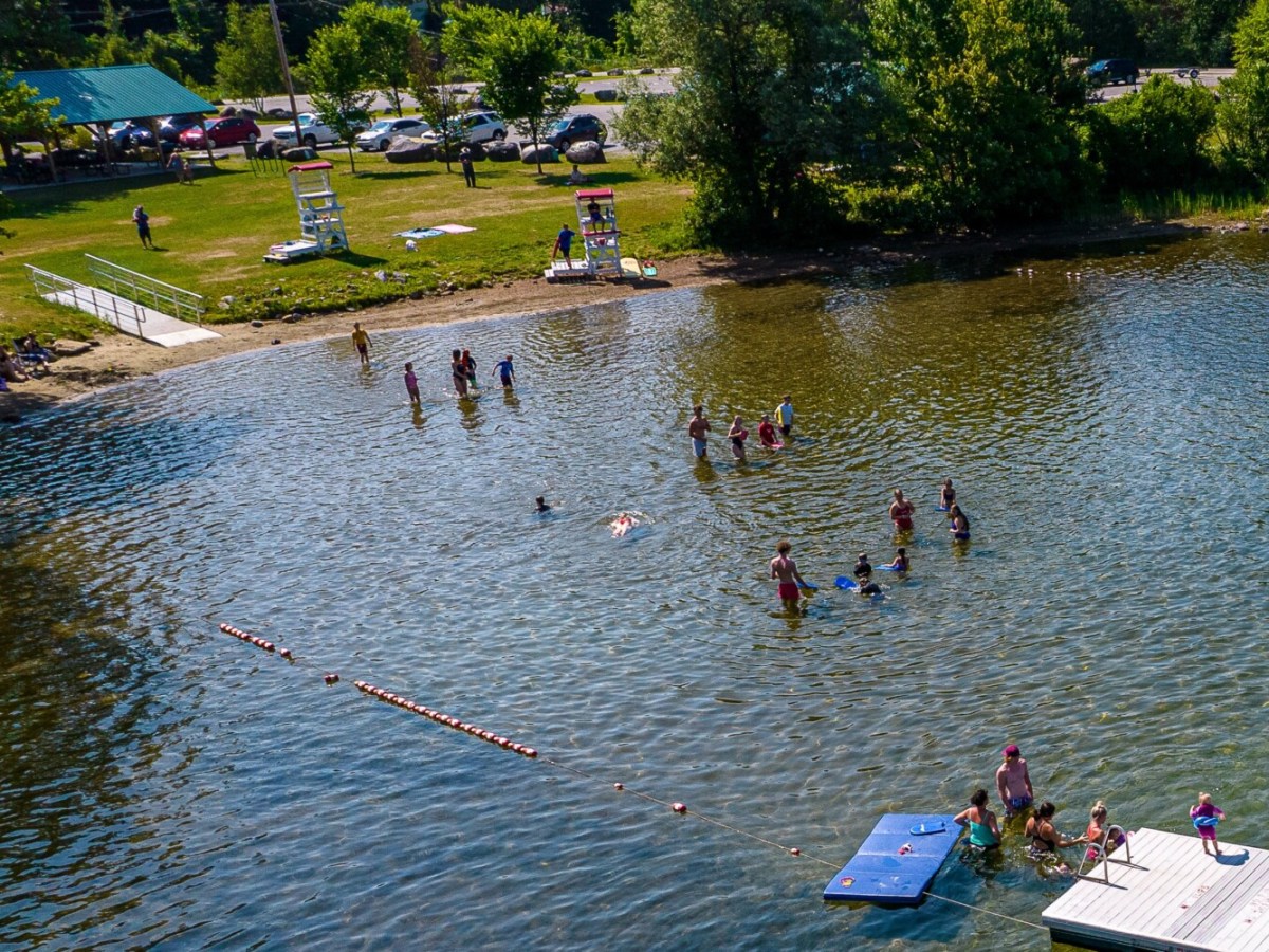 An aerial view of activity Wednesday morning on Cochnewagon Pond in Monmouth.