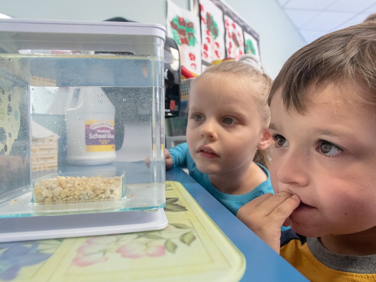 At the Libby-Tozier School in Litchfield, Cheryl Woodard’s prekindergartners learn from the class pets.