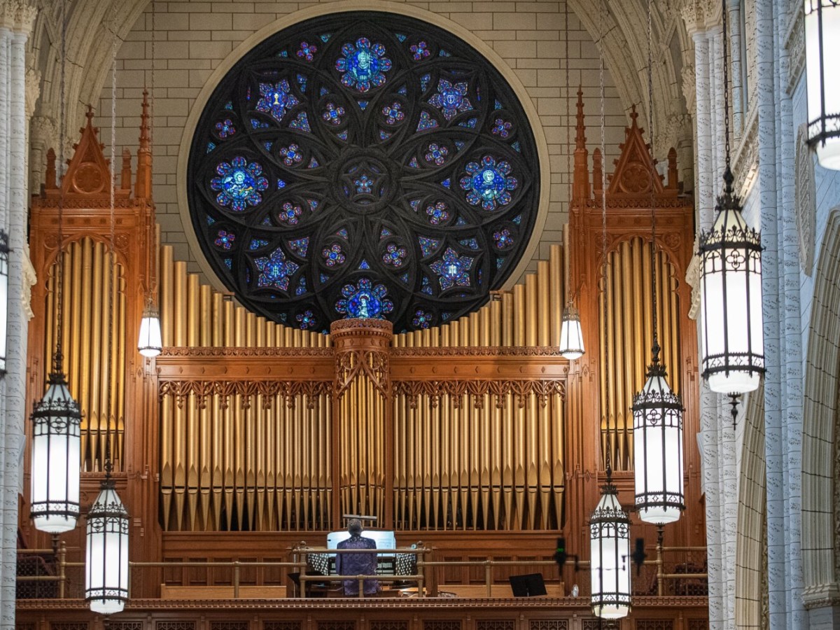World-renowned organist Ray Cornils performs to a socially distanced crowd Sunday afternoon at the Basilica of Saints Peter and Paul
